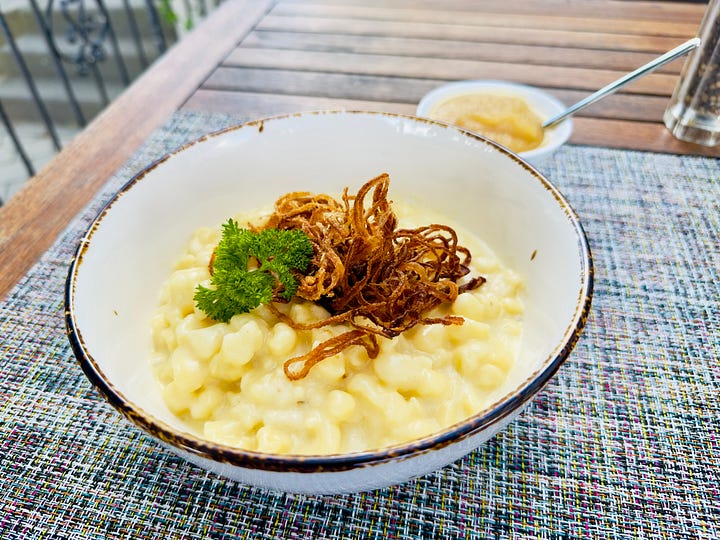 Geri, the fifth-generation owner of the Landgasthof Rössle, set down a plate of Käsknöpfle—soft dumplings tangled with melted cheese and crowned with fried onions, apple purée on the side. It was his grandmother’s recipe, he said, and it was delicious. At the neighboring tables, locals gathered for Mord Z Nacht, a community theatre murder mystery staged over a multi-course meal. My German wasn’t good enough to follow, so I let the voices and laughter blur into the background and, full and finished, went upstairs to bed.