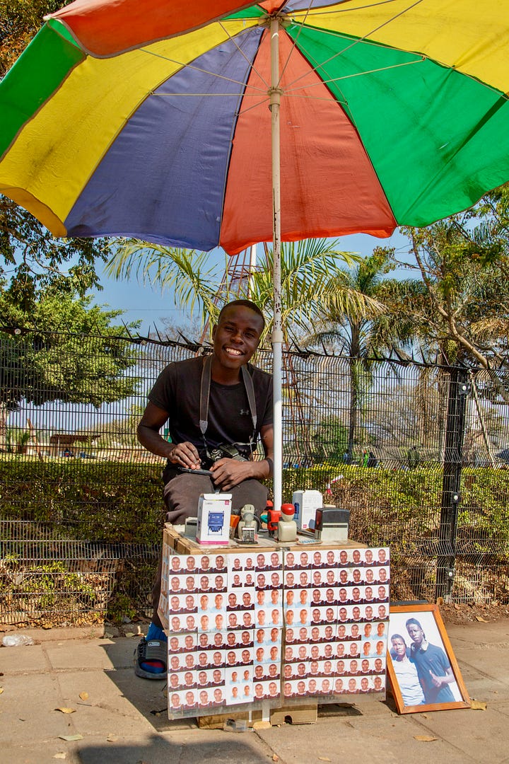 Most of it played out on the sidewalks: men set up beneath multi-colored umbrellas offering passport photos and stamping documents —everything a person at the edge of a map may need. One boy sat cleaning the lens of his camera with the concentration of a surgeon, pausing only for a brief chat about our respective cameras.